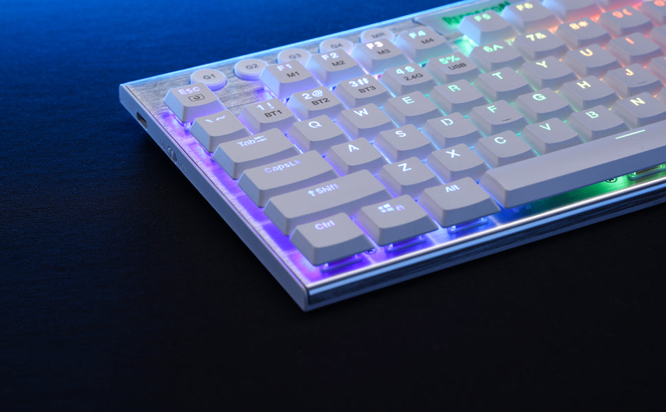 - 80% TKL Low-Profile: Compact tenkeyless 87 keys in low-profile design, offers more space for mouse movement and shorter actuation distance. Provides precise performance at half the height while retaining white simplicity style.
