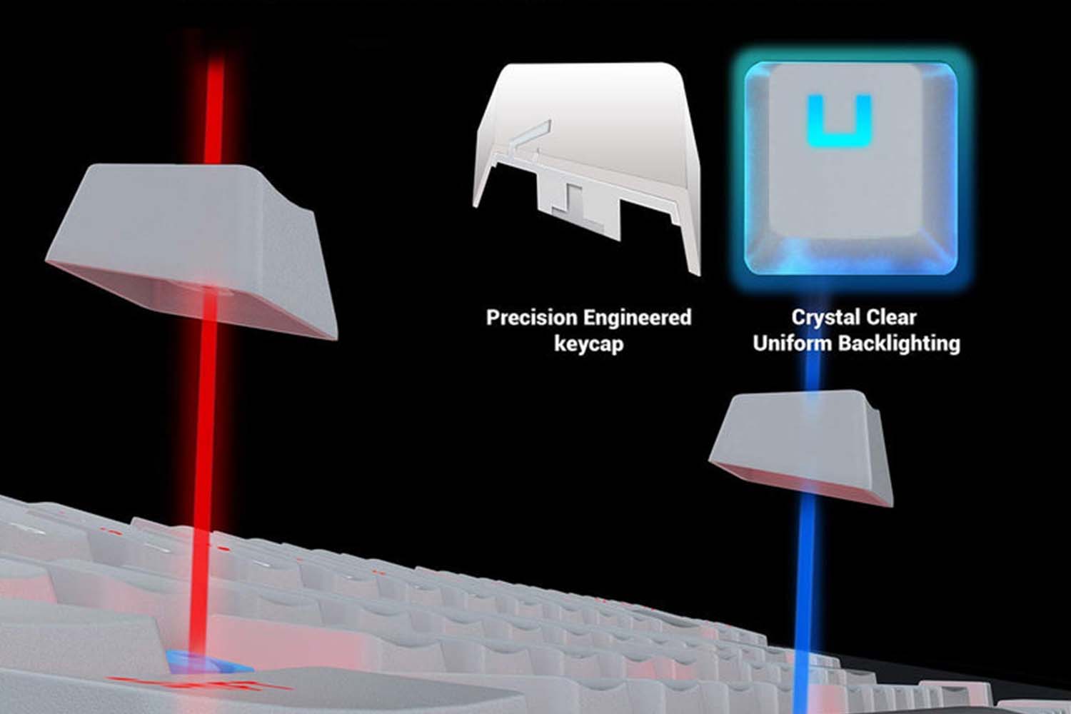 Precision engineered keycaps designed for durability and crystal clear uniform backlighting