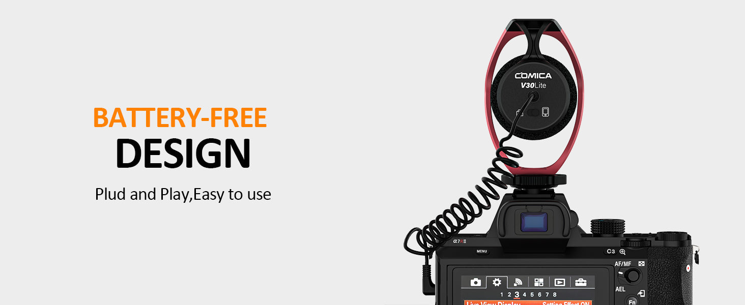 • Super-Cardioid Microphone: CVM-V30 LITE shotgun microphone is giving excellent off-axis rejection for desired sounds, which can effectively reduce the noise of the surrounding environment to be picked up.