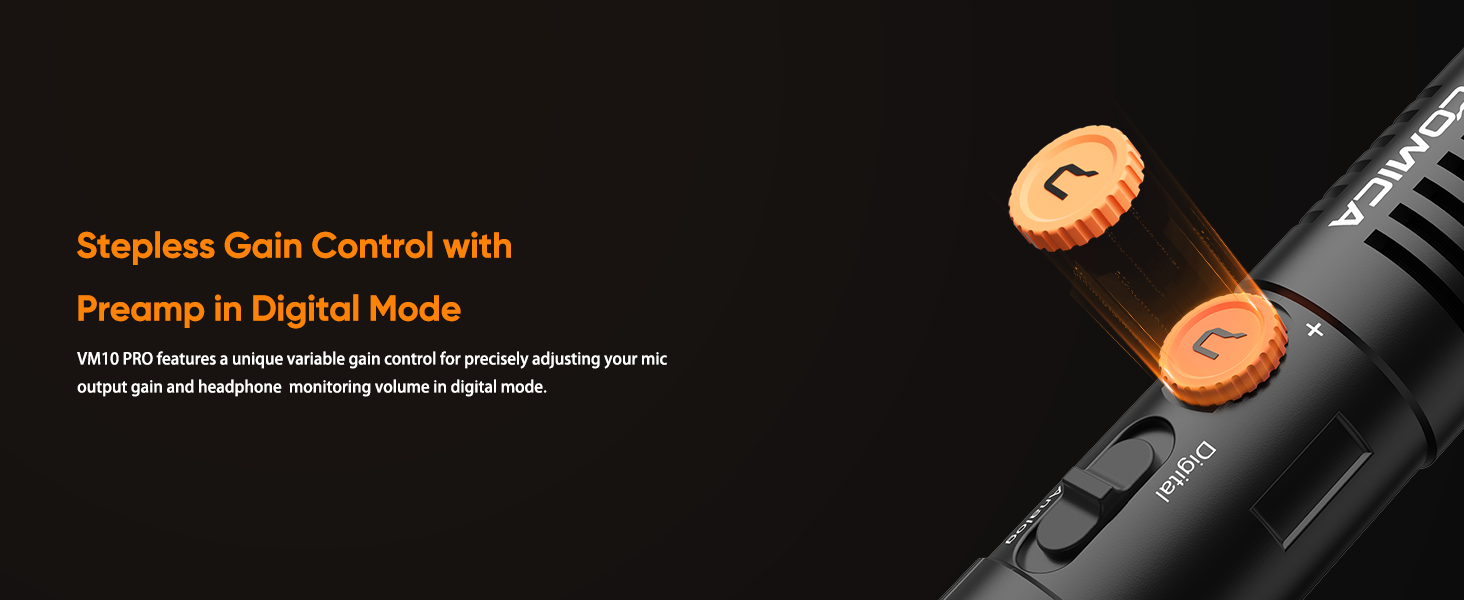 - Stepless Gain Control: VM10 PRO camera microphone supports stepless gain control with a preamp in digital mode, allowing you to adjust the volume freely to meet your shooting needs. It's easy to operate and convenient to use, giving you complete control over your audio.