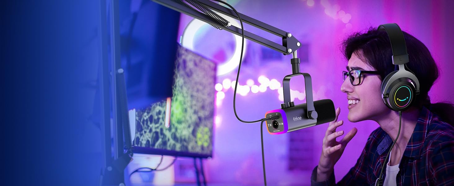 This computer gaming microphone comes with RGB button, mute button, mic gain knob, headphones jack and headphones volume knob which it is convenient to control the mic in podcasting, recording, gaming and streaming.