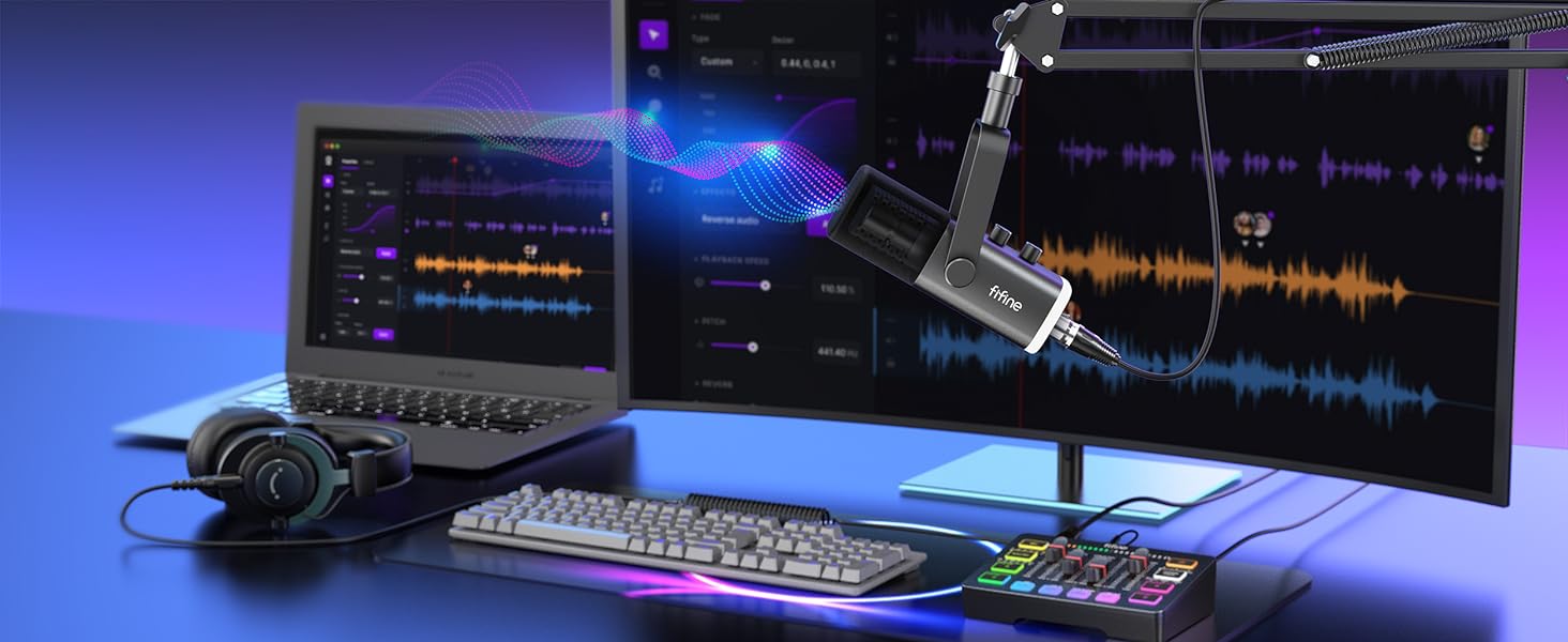 (Refurbished) Fifine Ampligame AM8T - XLR/USB Microphone Kit with Mute Button and Headphone Jack