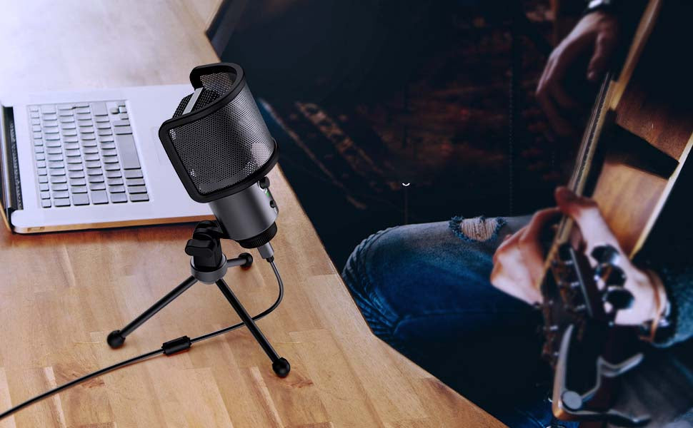- DETACHABLE POP FILTER - No need to buy extra accessories. This audio recording mic comes with compatible pop filter. It helps to reduce the pops and will keep your audiences from being distracted by the harsher sounds. The strong tripod stand allows you to use the computer mic easily in the most comfortable way possible..