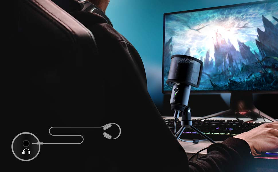 - EASY-TO-REACH CONTROLS - The gain knob enables quickly adjustment if there is any sensitivity, lack of sound or distortion during live broadcasting. Or if you want to take a break in the middle of a podcast, use the instant mute button. And there is a 3.5mm headphone jack on the back of this USB streaming mic for real-time monitoring.