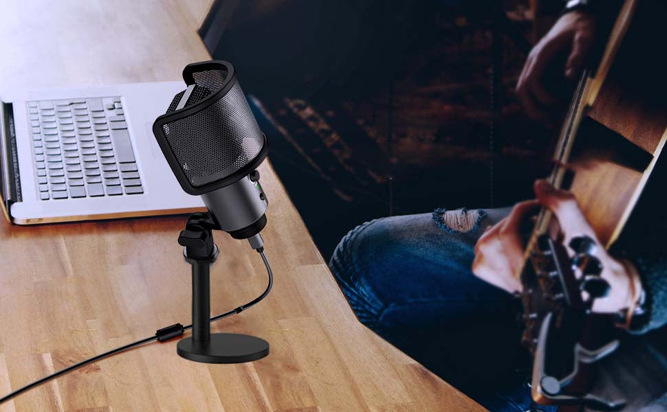 - DETACHABLE POP FILTER - No need to buy extra accessories. This audio recording mic comes with compatible pop filter. It helps to reduce the pops and will keep your audiences from being distracted by the harsher sounds. The strong tripod stand allows you to use the computer mic easily in the most comfortable way possible..