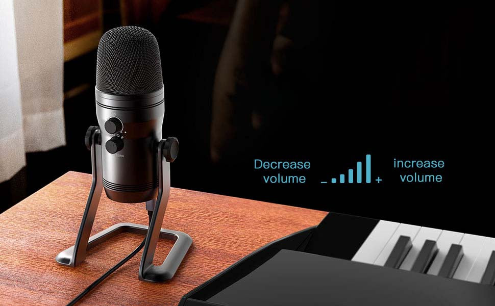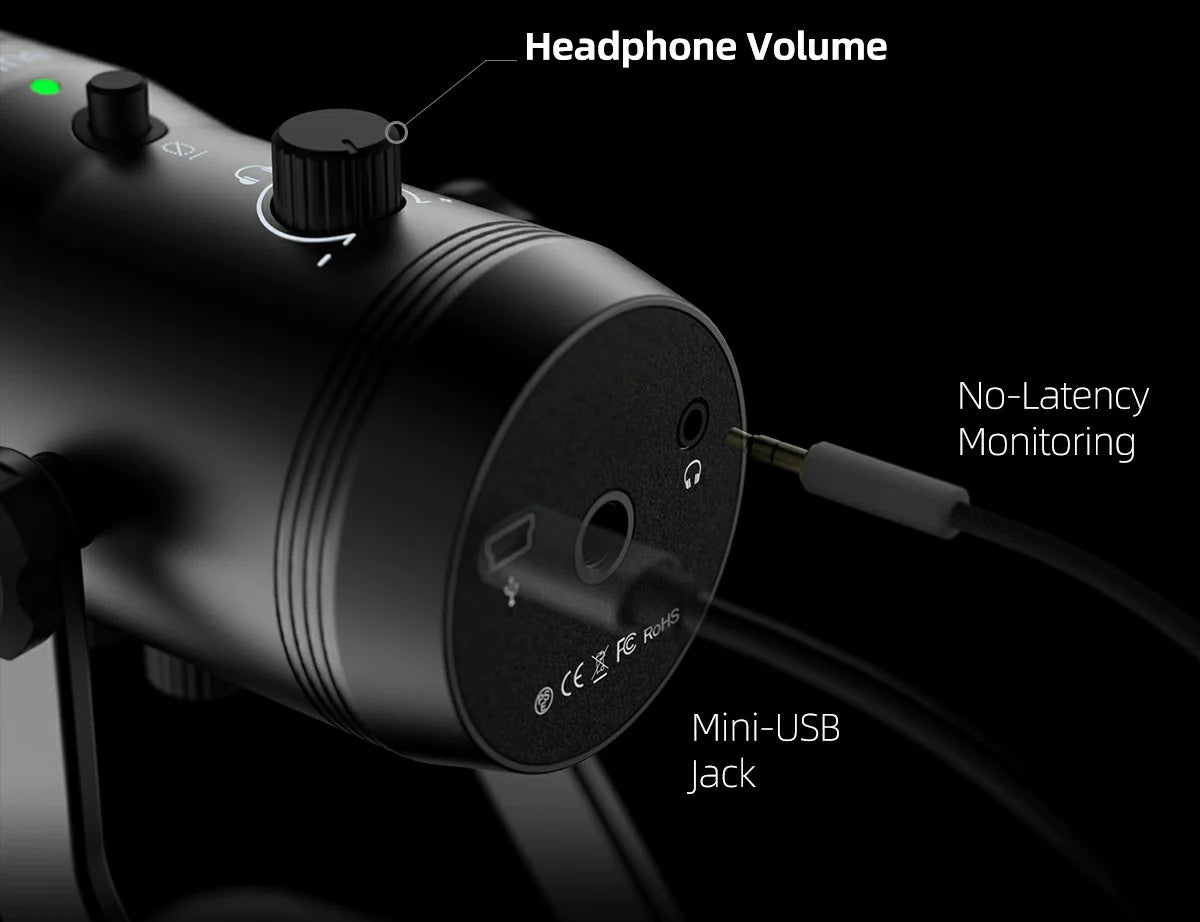 - [Microphone Gain, Pickup Pattern Switch] Change between cardioid, omni, bidirectional and stereo pickup patterns. No-Latency Monitoring-Monitor your voice in real time mixed with the sound from your computer to make sure your streams sound great.