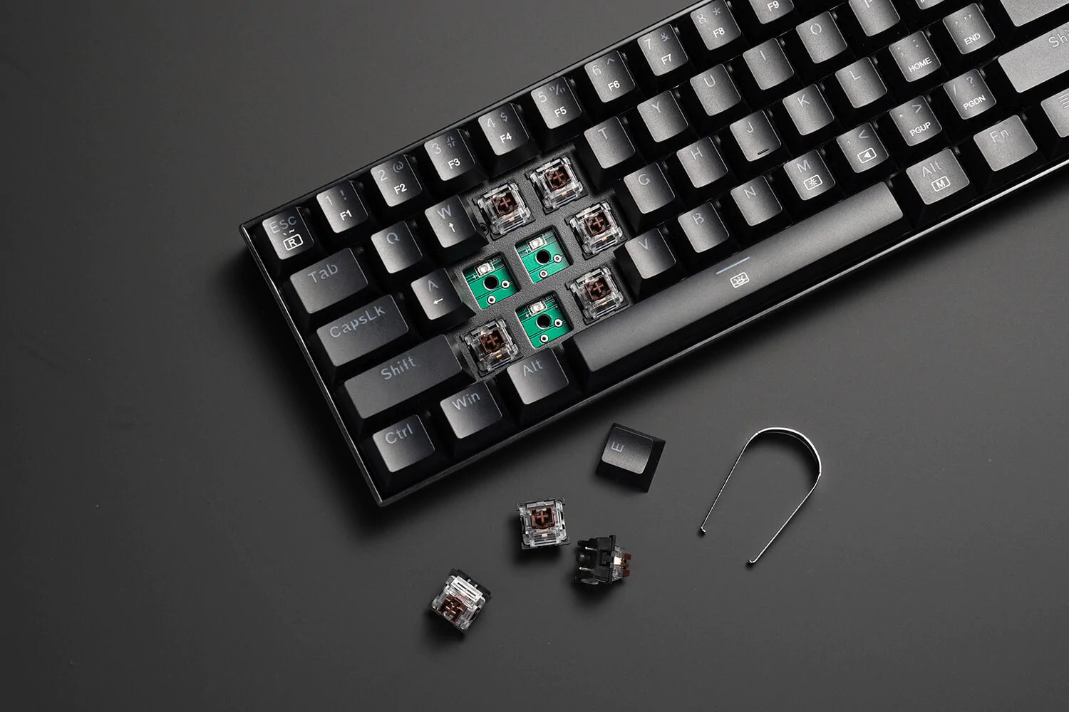 • Hot-Swappable Brown Switches: Tactile brown switches provide a soft bump but no click, unlike Blue, switches for quiet use. Hot-swappable with other Redragon switches. Made to last with switches rated for 50 million keypresses.