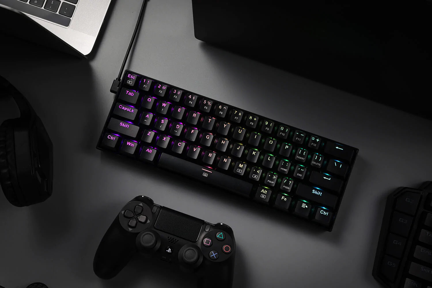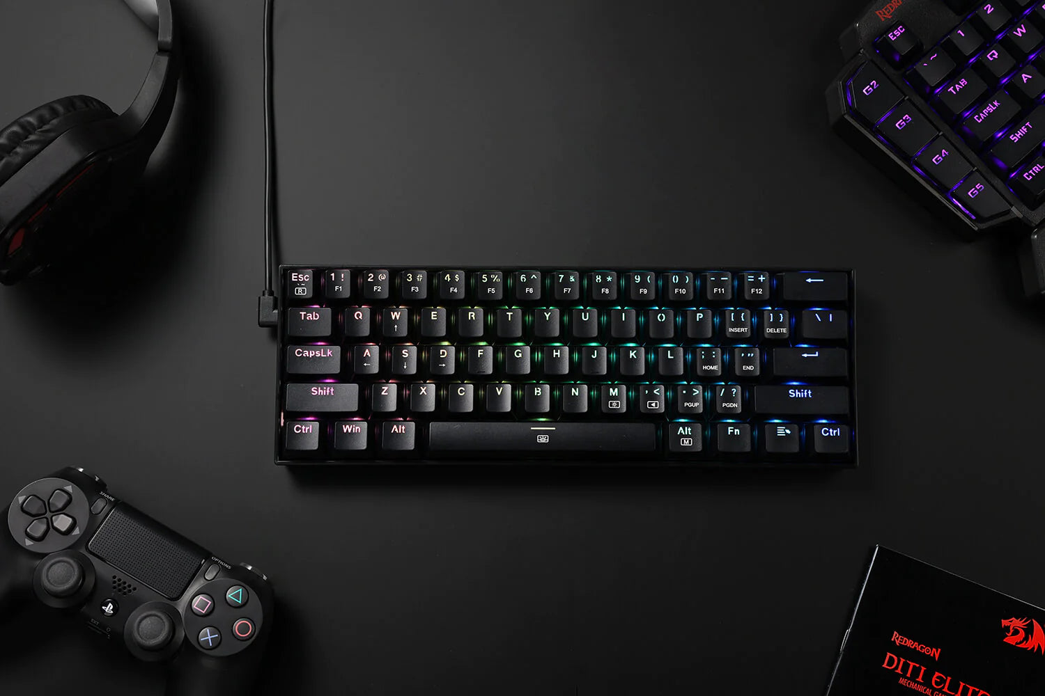- 60% Layout In Wired: Brand New Redragon 60% design in wired only mode due to popular demand. 61 anti-ghosting keys for ultra-compact and minimalistic design. Frees up precious desk space for less clutter.