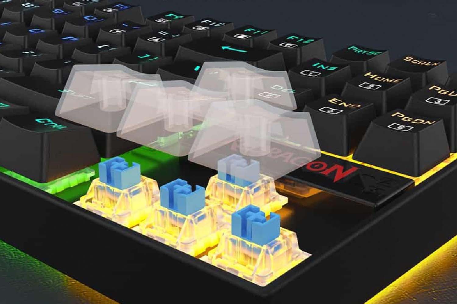 - 87 Key Mechanical Gaming Keyboard with Custom Mechanical Switches (Cherry Blue equivalent) designed for longevity with greater durability and responsiveness