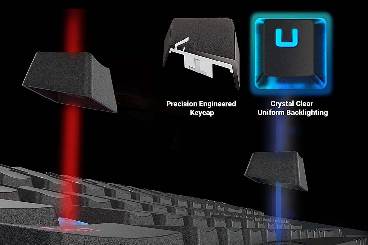 - The RGB Led keyboard comes with Double-shot injection molded keycaps offering crystal clear uniform backlighting and lettering that doesn't scratch off