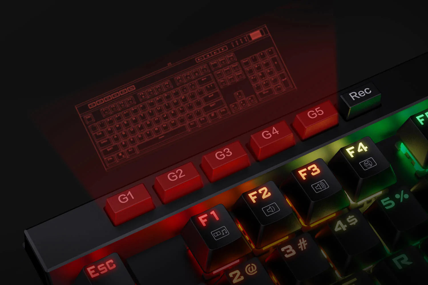 - 5 Macro Keys: There are 5 programmable macro keys(G1~G5) on the keyboard which can be recorded macros on the fly without any additional software required to be installed. Easy to edit and DIY your stylish keyboard. ?No CD software included, please download software from http://bit.ly/K580keyboard?
