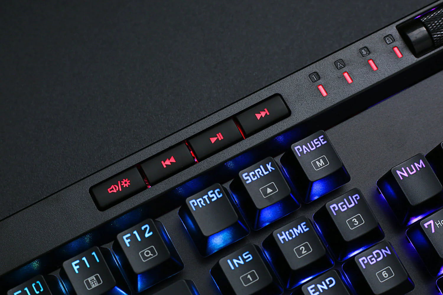 - Dedicated Multimedia Controls: The multimedia controls let you quickly play, pause, skip the music right from the keyboard without interrupting your game. Also, designed with a volume/backlight adjust wheel, it's easy to adjust volume or backlight brightness directly with the wheel in the upper right side of the keyboard. Very convenient and cool looking.