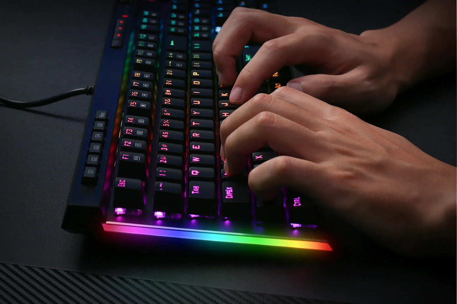 - RGB Backlight: 18 backlight models allow you to type in the dark. You can adjust its brightness with a control wheel or FN + Up/Down. 5 modes of RGB side edge lighting. The color of each key lighting on the keyboard can be customized easily without installing software, a great choice to DIY your stylish keyboard.