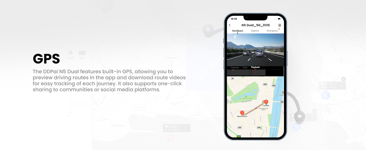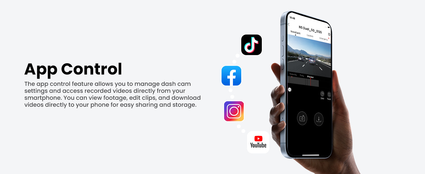 - Built-In 5G WiFi and Control App: With built-in 5G WiFi, the N5 Dual allows wireless connectivity via WiFi. Use the "ddpai" app to directly preview, edit, and download videos to your smartphone (compatible with Android and iOS), making it easy to share driving videos with others.
