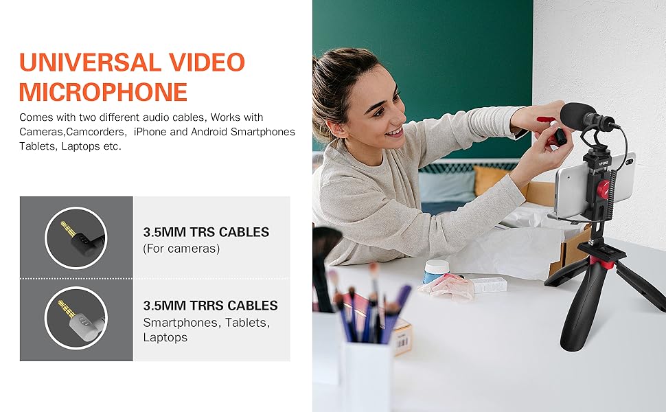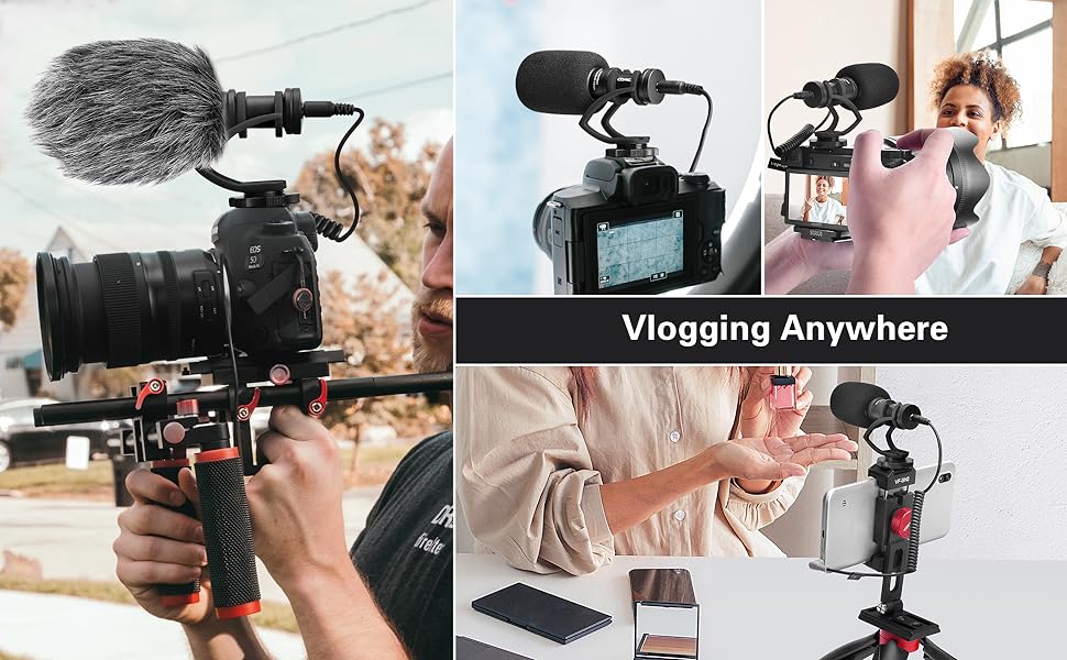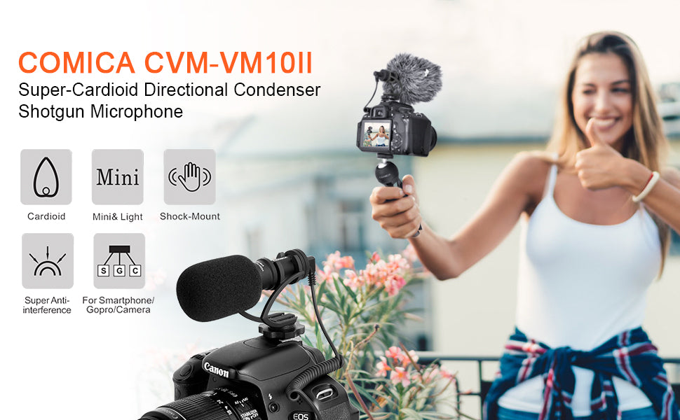 - Wide Compatibility: Comica CVM-VM10II camera microphones comes with 3.5mm TRS Audio Cable and 3.5 mm TRRS Audio Cable ( Not available for Canon T5i/T6/T7/HF R800). Widely works with Cameras, Camcorders, Audio Recorders, iPhone and Android Smartphones, Tablets, Laptops etc. External recording mic for Tiktok Vlogging, You Tube Facebook Live-stream etc.