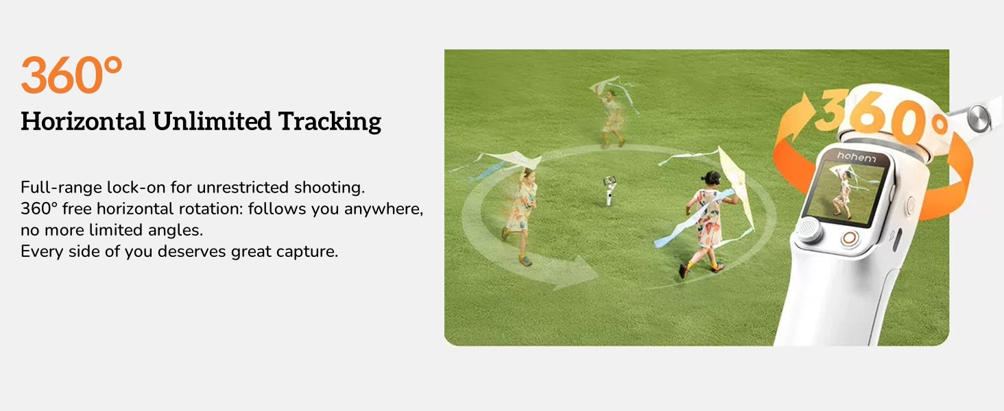 - AI Vision Sensor & Seamless Tracking: Built-in high-precision AI vision sensor enables stable, fluid auto-tracking of people/faces without extra accessories. Simple gestures activate/deactivate tracking, making solo content creation easier than ever.