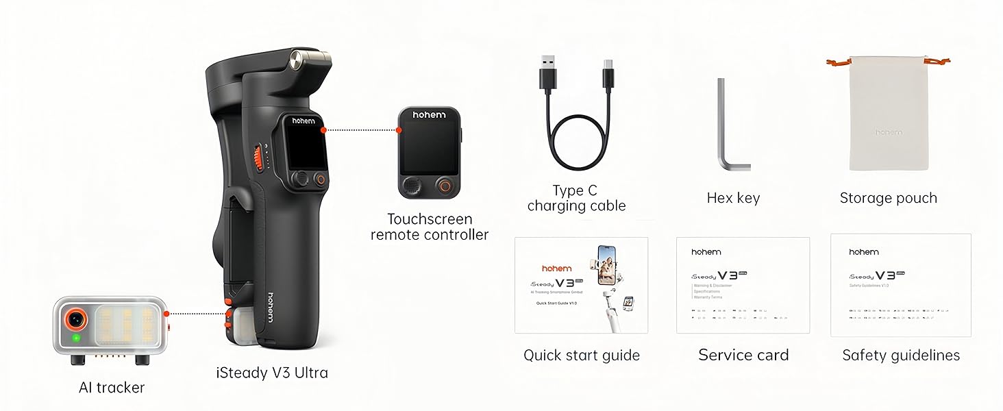 - Native App Control & Creative Features: The powerful Hohem App enables masterful camera techniques like gesture control, Hitchcock zoom, and dreamy panoramas. It also supports motion control and wireless phone charging, delivering a comprehensive creative shooting experience.