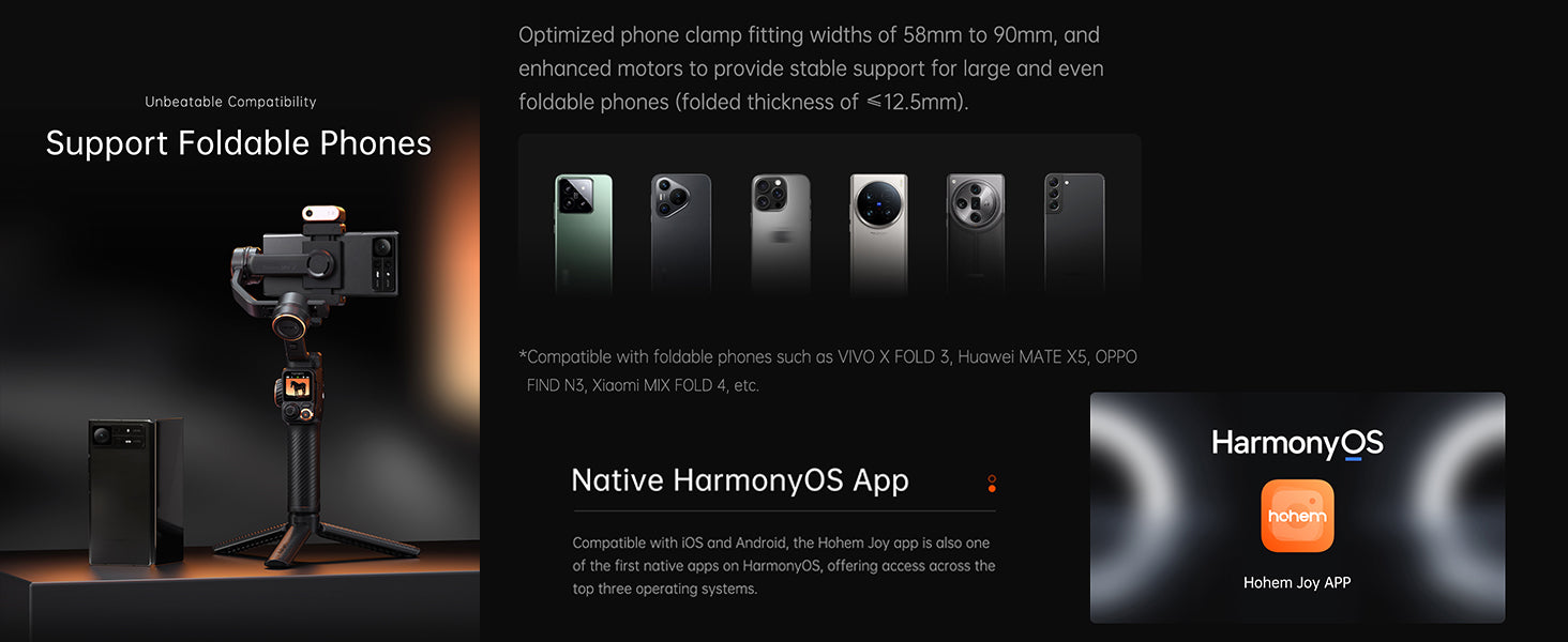 Operating Time | Approx. 12 hours (Balanced and stationary) 3~4 hours (AI tracking + fill light used simultaneously) *Data sourced from Hohem Laboratory |
