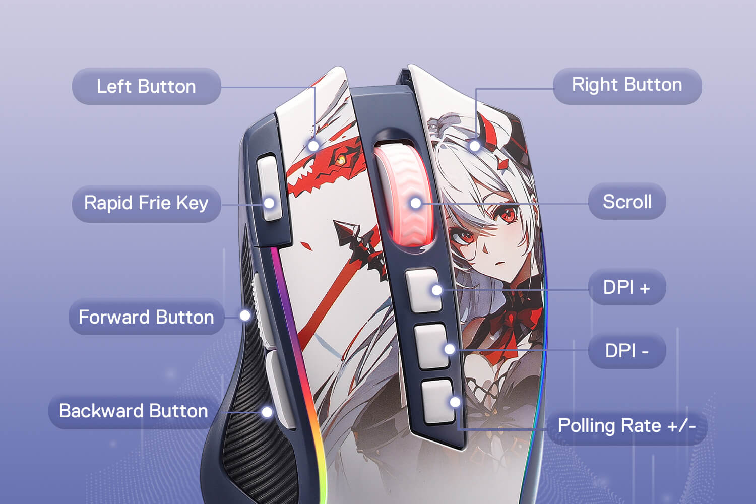 - Comfort Grip with Details - The skin-friendly frosted coating is the main comfort grip of the mouse surface, which offers you the most enjoyable fingerprint-free tactility. The left side equipped with rubber texture strengthened the friction and made the mouse easier to control.