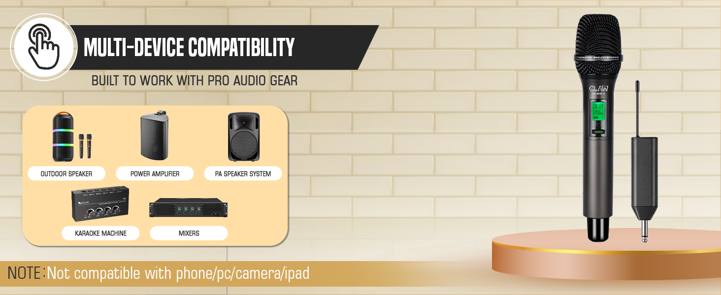 - 🔊 Frequency Multiplexing – Use Up to 20 Mics Together – Advanced frequency multiplexing technology allows multiple microphones (up to 20 units) to work simultaneously without signal clash, ideal for conferences and group performances.