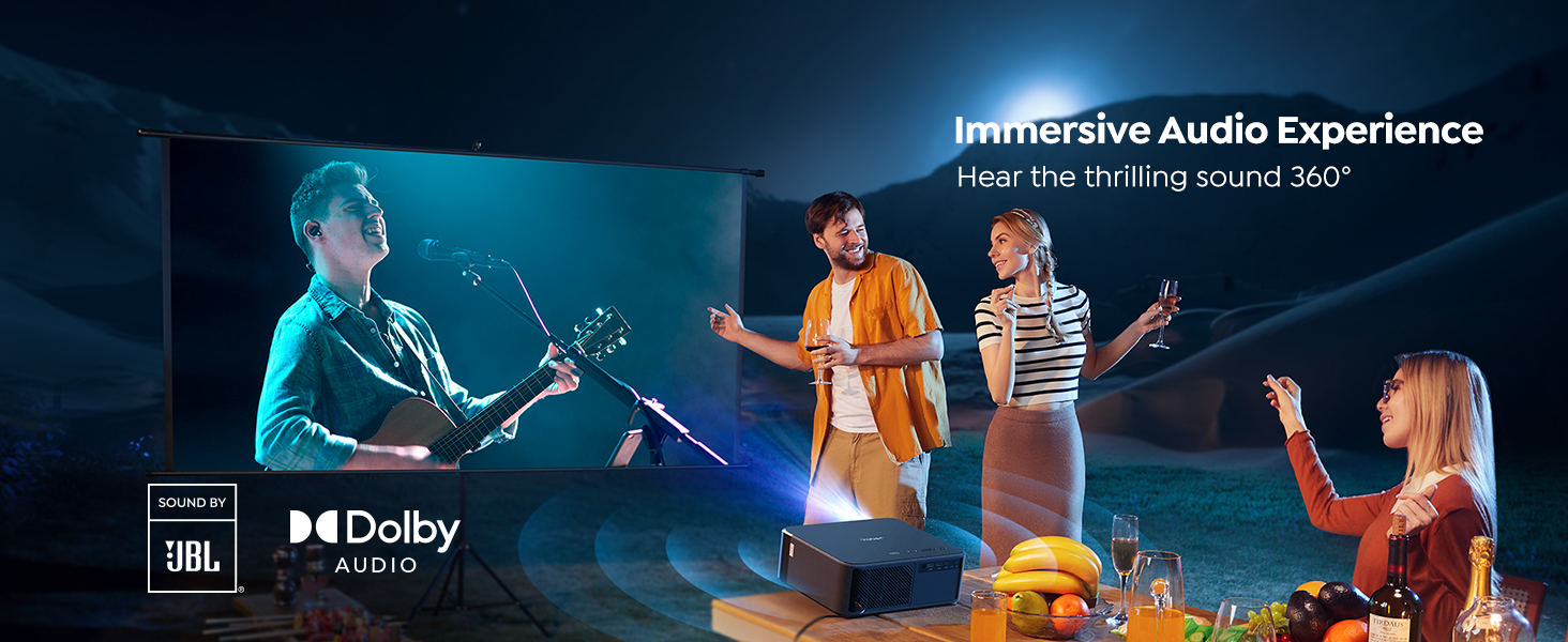 • ➤【Superior audio experience 】This home movie projector built-in dual 10W JBL stereo speakers of ,coupled with Dolby Audio support, create a dynamic & immersive sound experience that elevates movie nights, gaming sessions, and presentations to new heights.Two-way Bluetooth, you can turn off the screen and use it as a Bluetooth speaker.