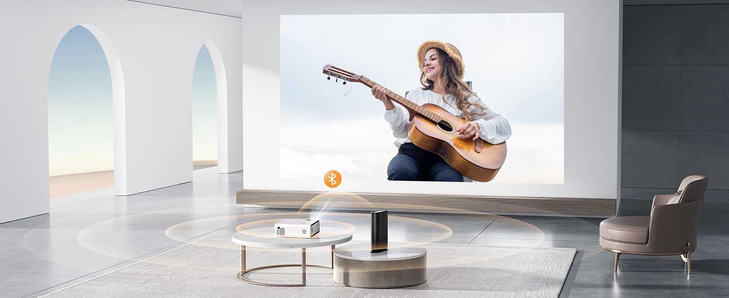 - Advanced Sound System & Bluetooth 5.1 : The movie projector carries an advanced Bluetooth 5.1 chip that can easily connect Bluetooth, headphones, or other audio equipment. A built-in Hi-Fi stereo surround speaker gives you an immersive experience.