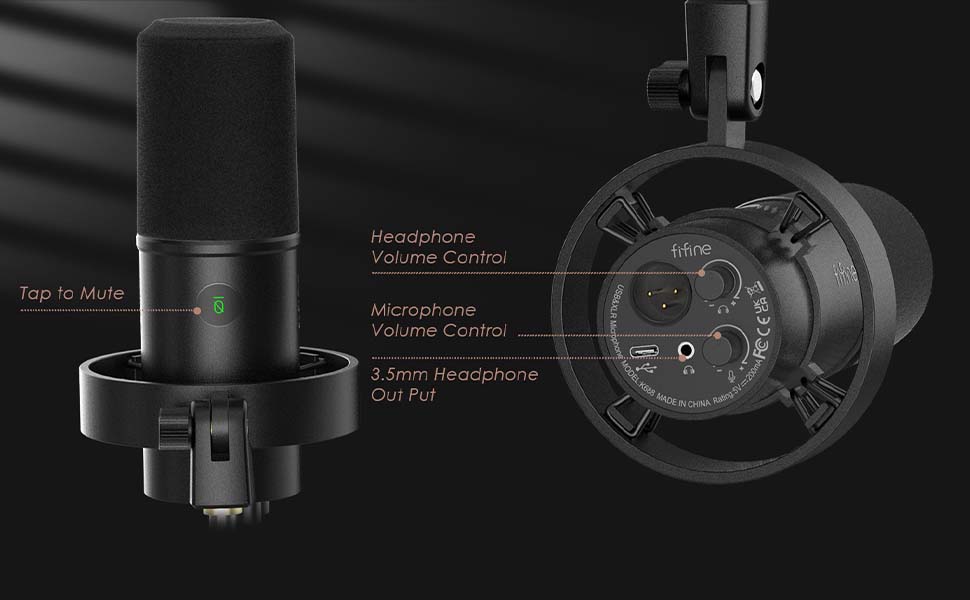 - [Mute and Gain Control] Tap-to-mute on the USB mic front panel is handy to mute instead of pushing a button, which is noise-free to avoid unnecessary noise into your singing, podcast or streaming. No need to fiddle with software settings on your Macbook, you can control the recording audio volume by gain knob on the studio mic for PC, to output more vivid broadcast audio. (Only available for USB connection)