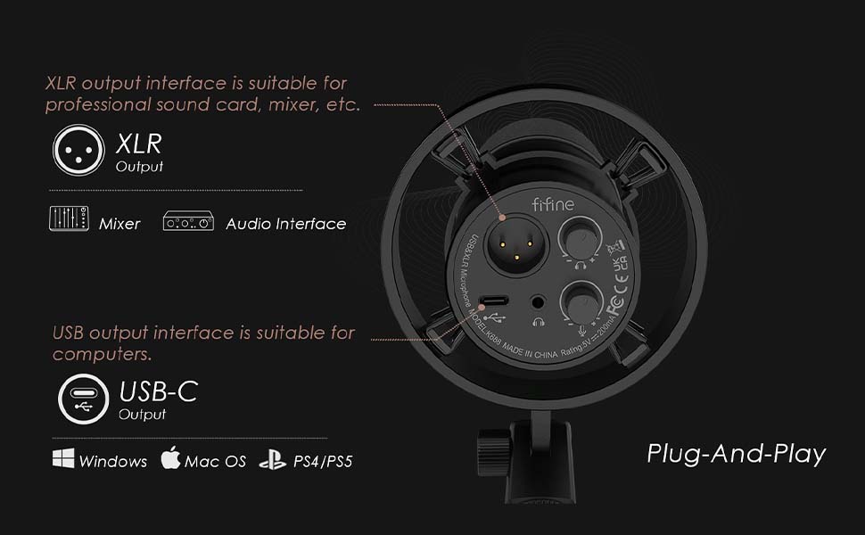 | Output Connection | USB type-C (mic end) to type-A 2.0 (computer end)/XLR |