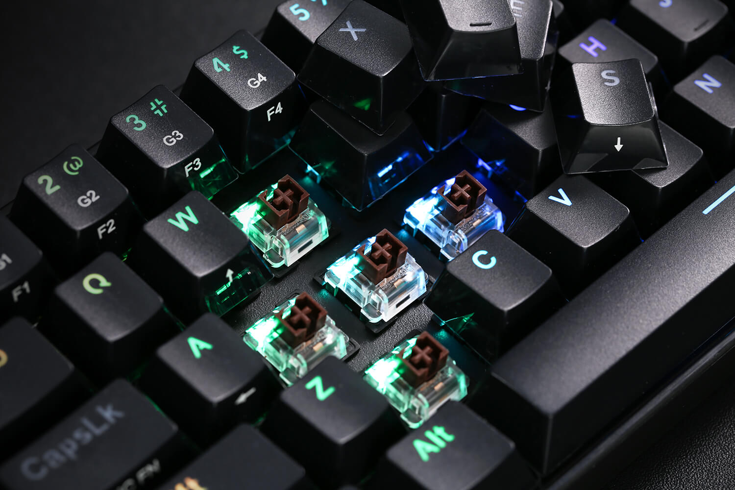 - Hot-Swappable Brown Switches - Hot-swappable with almost all switch types in the market no matter 3-pin or 5-pin. Basic tactile mechanical switches, clear tactile feedback with audible clicky. Easy to mod or update it with your wishing preference, no forum researching required.