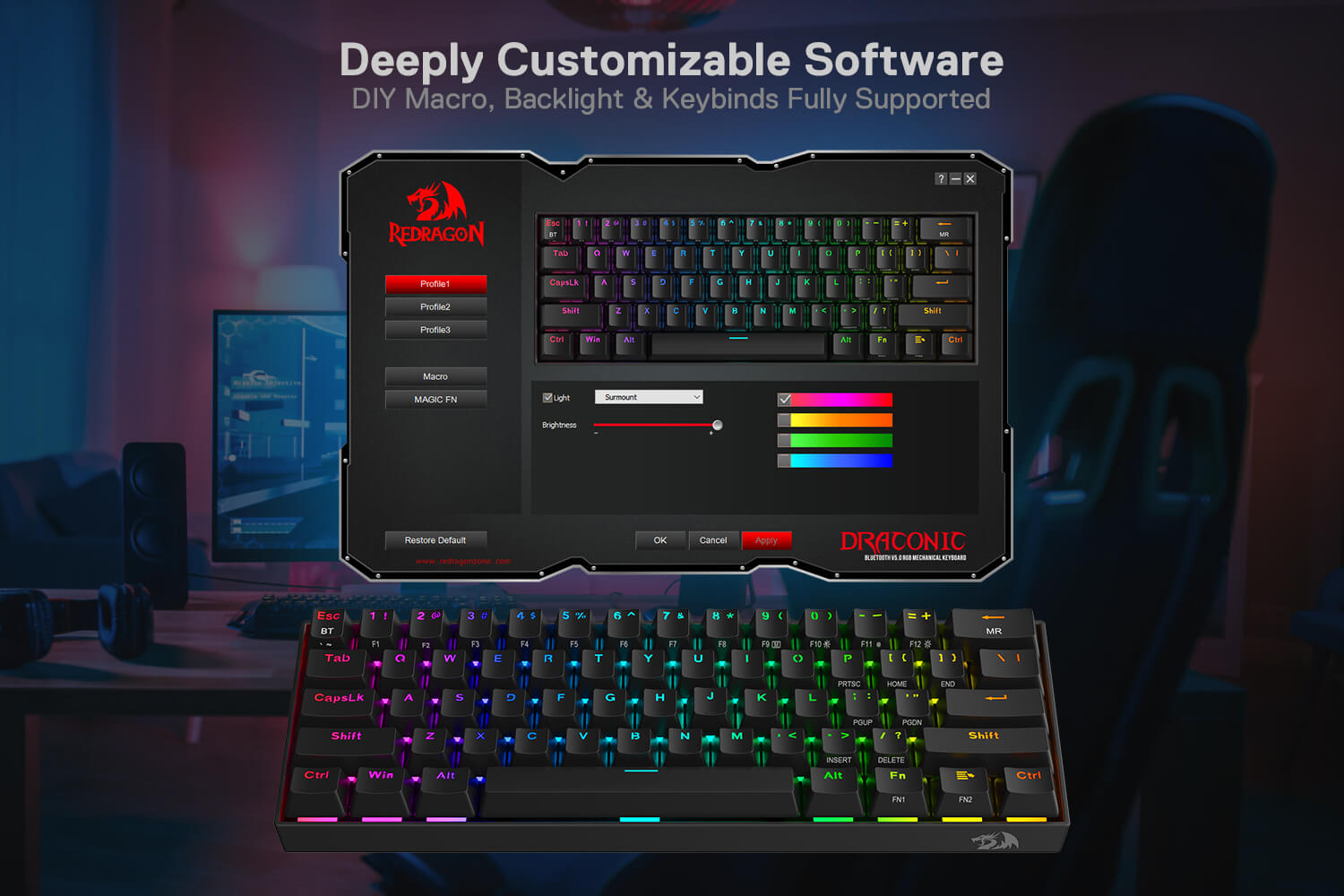 - 3-Mode Connection - Geared with Redragon innovative tri-mode connection technology, USB-C wired, BT 3.0/5.0 & 2.4Ghz wireless modes which make the user experience upgraded to another level in all fields.