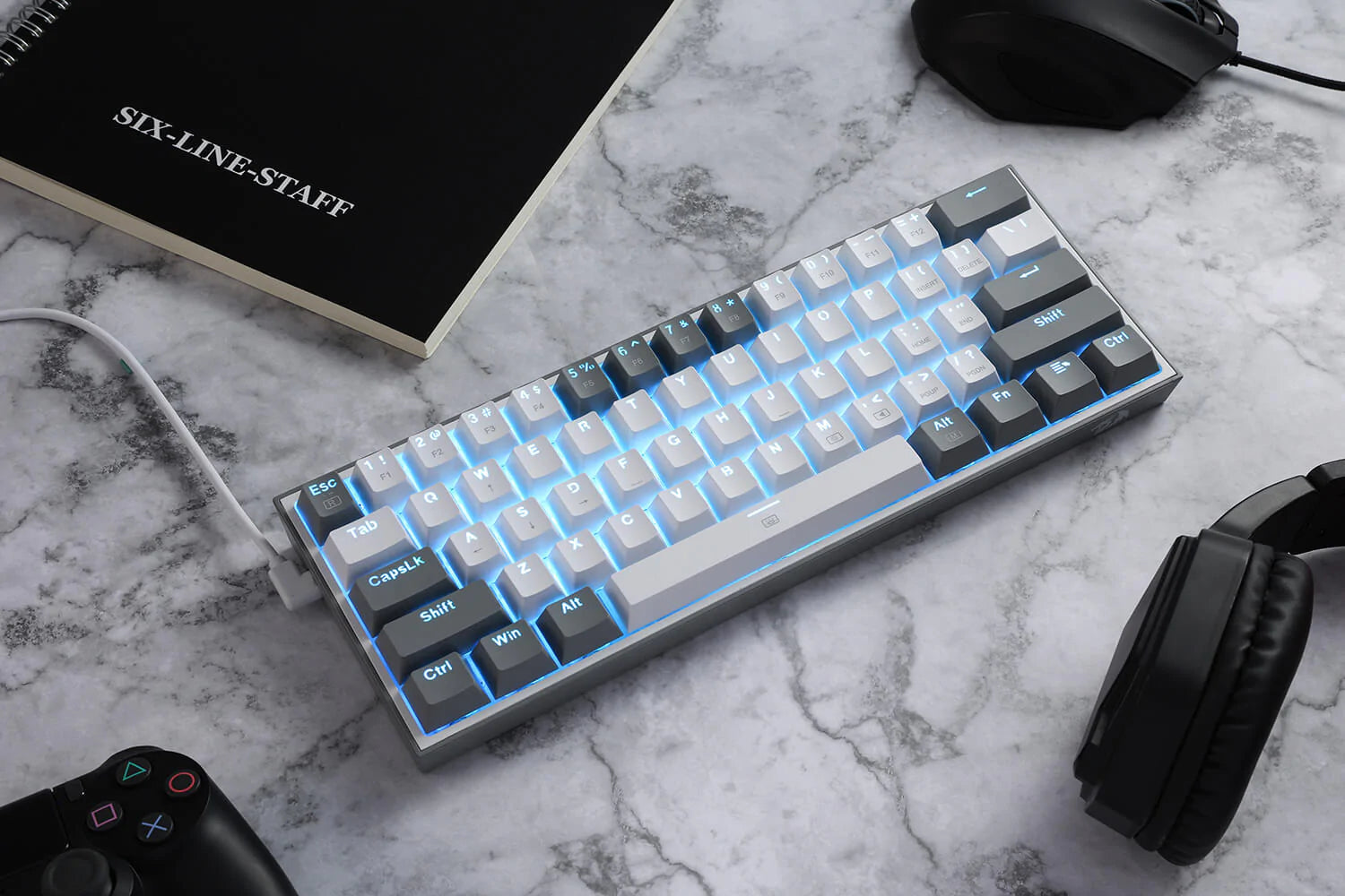 - 60% Wired & 2 Colors Keycaps: Redragon 60% keyboard in wired mode with fresh 2 colors mixed keycaps layout. Ultra-compact 61 keys with novel keycap color frees up precious desk space with vibrant elements.