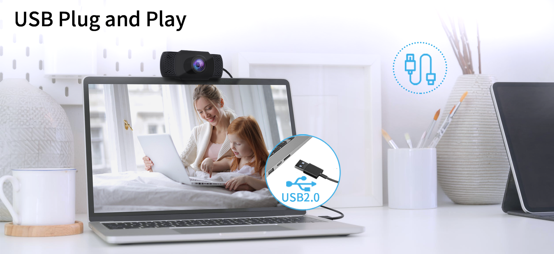 - Easy Set up , Plug and Play USB webcam with USB 2.0 and adjustable base