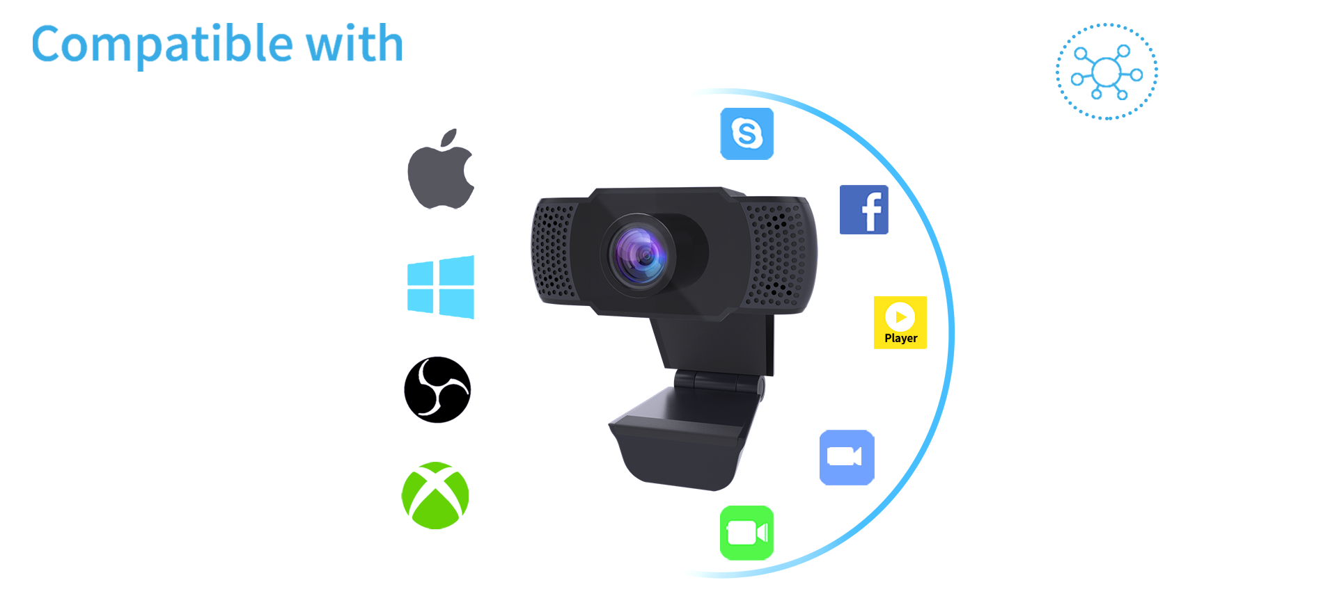 - 1080P USB Webcam, With advanced H.264 compression technology and 1080P resolution lens